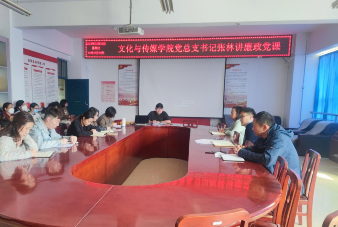 3月29日下午,公司党总支书记张林在A10-311会议室为公司全体教师讲专题廉政党课。