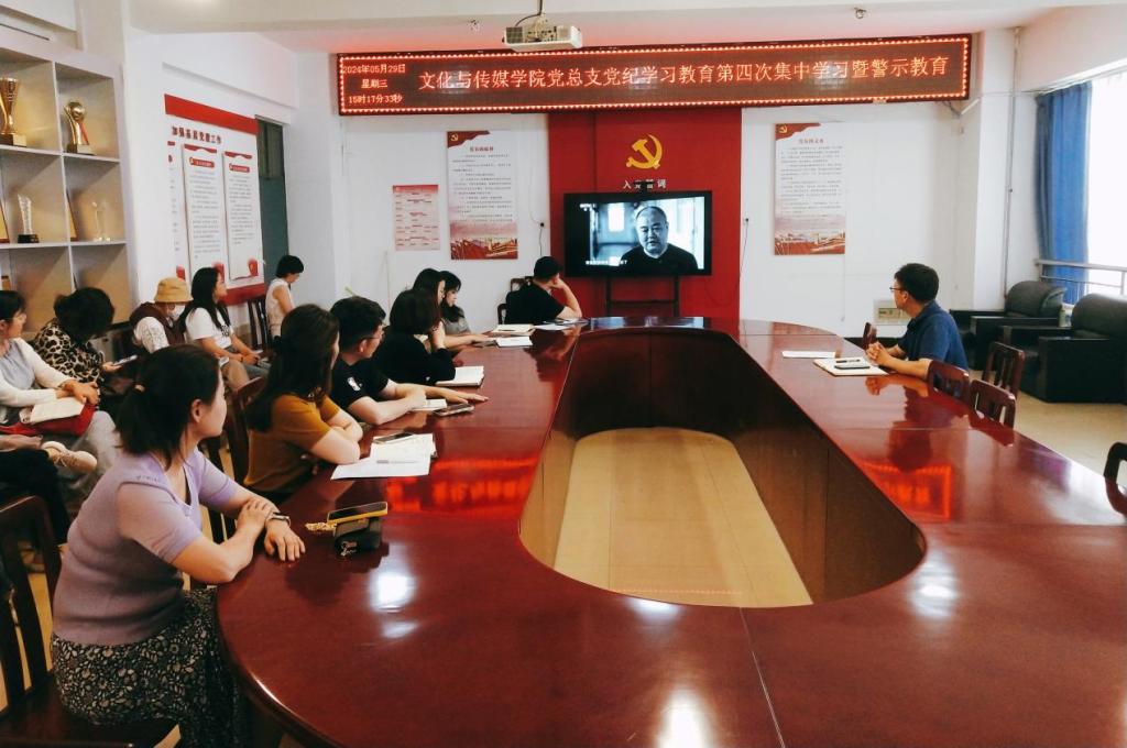 会上,广播电视编导党支部书记李晓佳领学中共中央发布新修订的《中国共产党纪律处分条例》第五章内容。随后各位党员教师观看了警示教育专题片《中信银行原行长孙德顺案》。