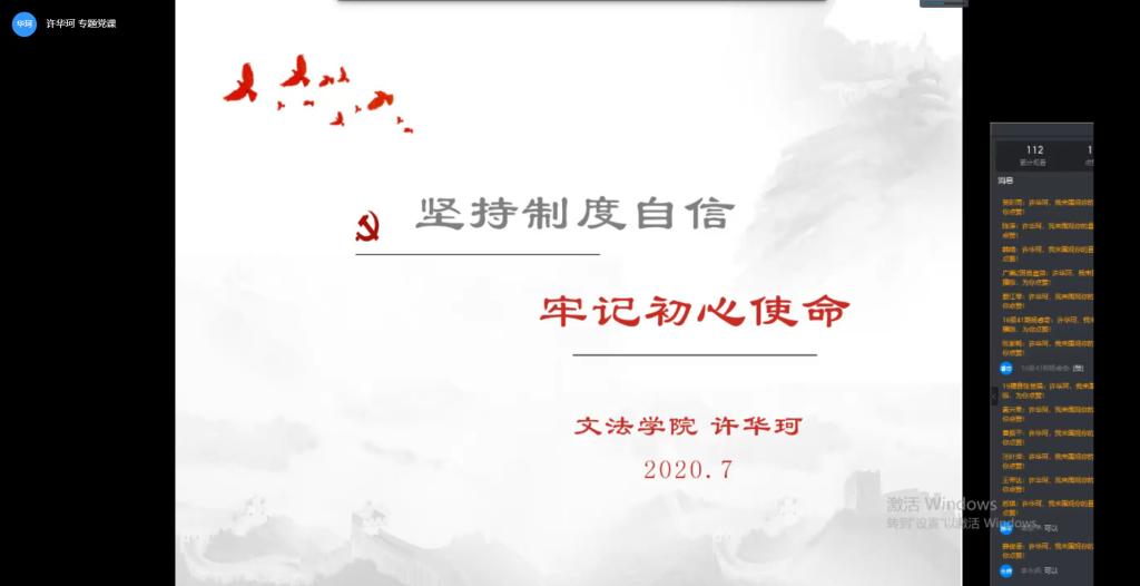 为巩固拓展“不忘初心、牢记使命”主题教育成果,进一步坚定党员的理想信念,根据上级党委组织部的通知要求,7月3日,文法公司党总支组织开展“党课开讲啦”活动。本次党课采用线上形式进行,由公司党总支副书记许华珂主讲,该公司100余名员工党员、入党积极分子参加党课学习。