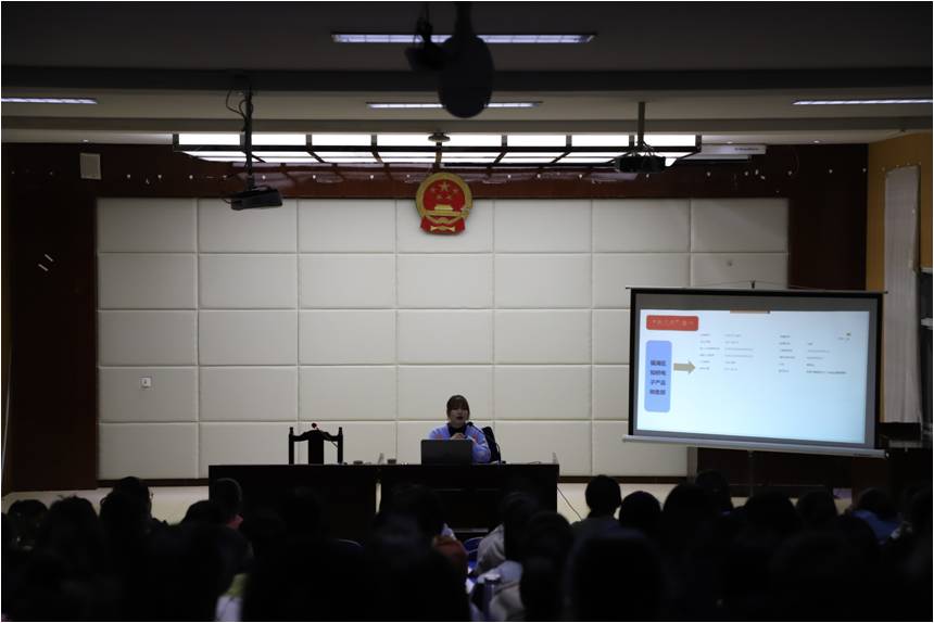 朱梦云博士首先对知识产权法学进行了一定的概述,生动形象地为同学们补充了鲜有接触的创新路径。继而,又着重讲述知识产权创造,生动的阐释了知识产权在企业中的重要意义。最后,就企业经营中的知识产权质押融资问题,谈了谈自己的看法以及建议。