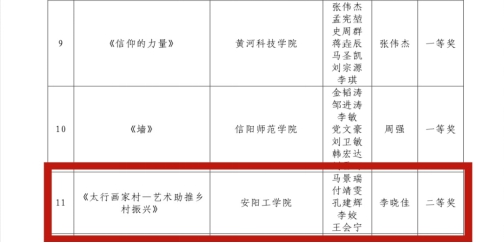 本次活动共收到61所高校报送的462部原创微电影、短视频作品。大赛组委会分别从中遴选出100部优秀作品。PA视讯创作的微纪录片《太行画家村——艺术助推乡村振兴》荣获二等奖;微纪录片《扁担精神肩上挑 乡村振兴路上跑》荣获三等奖;微电影《那人 那山 那渠》荣获优秀奖。